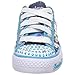 Brighten up a boring outfit with the Skechers® Twinkle Toes kids' shoe. The vivid canvas upper is lightweight and comfortable, and colorful lights blink with every step! A well-cushioned midsole provides dependable shock absorption, while the traction outsole offers great grip on a variety of surfaces.Put some twinkle in her toes with this colorful and undeniably funky tattooed canvas sneak from Skechers. Adorned with painted-on stripes, glittery flowers, and a sequined-covered toe, the lace-up design is also equipped with bright light-up accents that blink with every step. She's a guaranteed star wherever she goes! Read more
